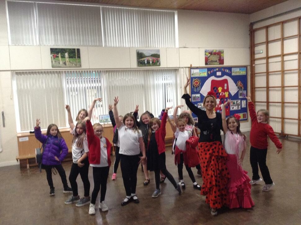In Spanish club we had a fantastic flamenco lesson from Mrs Thornes!